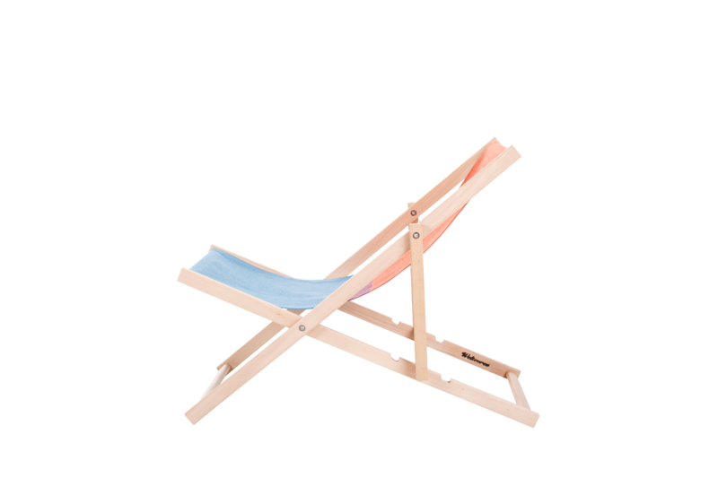 Designer Erik Stehmann gives the classic beach chair a modern update. The fresh colours of the fabric were created in a collaboration with design studio Raw Colour and are inspired by the horizon: the sunset and sunrise.