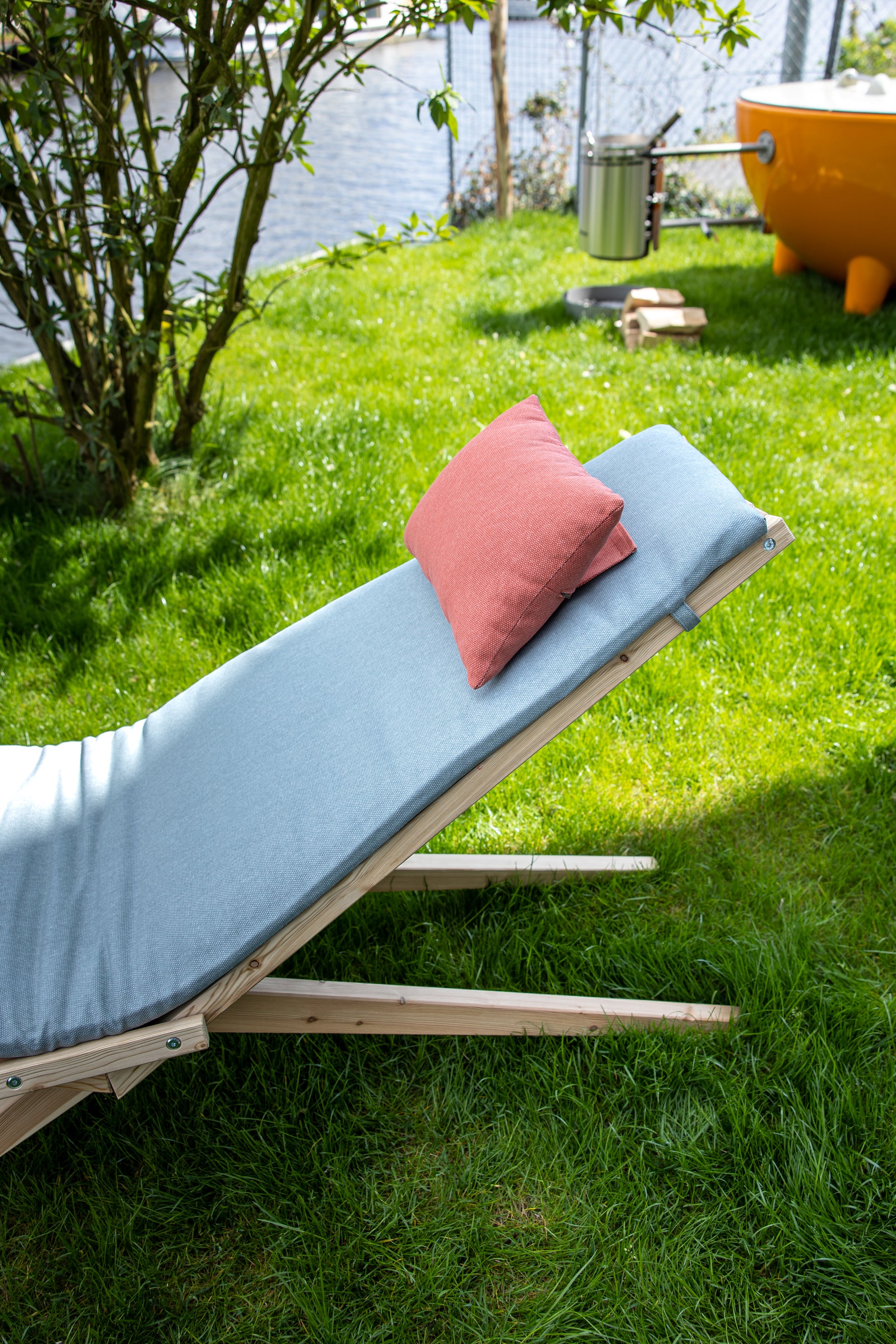 Crafted from sustainable larch wood, the Woodlounger offers both durability and elegance, with minimal upkeep required to ensure years of enjoyment. Its smart design makes it as easy to store as it is to relax in – simply fold the chair in half and store it upright when not in use. Available with a pillow set in a stylish silver-blue and terra red combination, the Woodlounger is a luxurious addition to any space.